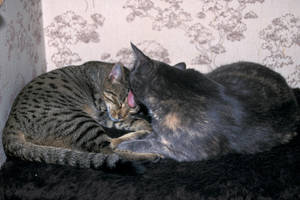 Die letzten Tage war die Langhaarige ständig am Telefonieren. Ich hab da so Worte aufgeschnappt wie rot, Kater, nicht älter als 2 Jahre, müssen sich vertragen, u.s.w. Und dann, eines Tages, steht doch wie aus heiterem Himmel ein Kater, na ja, mehr ein Katerchen, im Wohnzimmer. Da muß ich aber erst mal zeigen, wer hier die Herrin im Hause ist. Ich mache mich dick und knurre. Das scheint den Kerl ja überhaupt nicht zu beeindrucken. Der geht einfach auf mich zu und will Köpfchen geben. Na, mit mir nicht! Daraufhin spring er auf meinen Katzenbaum. Unverschämt ist das! Anschließend muß ich zugucken, wie er durchs ganze Haus spaziert. Ich gehe sicherheitshalber hinterher. Immer wieder will sich der Kleine bei mir anschmusen.