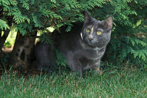 Nach einer Autofahrt hat mich mein Frauchen vor einem fremden Haus aus dem Transportkorb gelassen. Während sie sich noch mit einem Bärtigen unterhält, der aus dem Haus kam, gehe ich da gleich mal hinein. Wie ich drinnen durch ein Katzenloch gehe, stehe ich dort auf einmal einer dunkelgrauen, knurrenden Monsterkatze gegenüber. Manieren hat sie auch nicht! Ich will sie begrüßen und was macht die - die dreht sich einfach weg! Also erst mal das Revier erkunden. Oh, das ist wirklich nicht schlecht, größer als meine bisherige Wohnung und überall Katzenklappen, auch eine nach draußen. Die ist aber zu. Dann fährt doch mein Frauchen ohne mich weg und läßt mich bei dieser Monsterkatze.